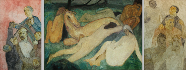 In memoriam Karl Hofer 1965 182 x 257 Flügel links: Tod des Künstlers Flügel rechts: Blinde führen Blinde neu: Sie sehen mit den Ohren jeweils 182 x 108 cm